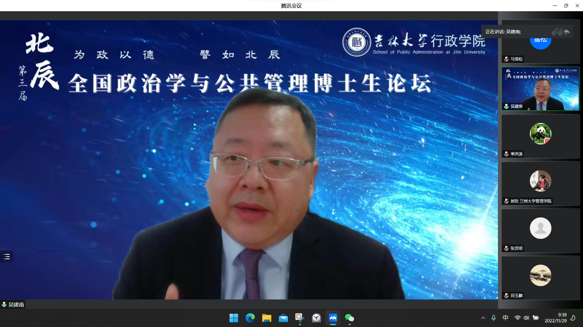11月29日,公司第三届“北辰”全国政治学与公共管理博士生论坛在腾讯会议云端成功举办。本次论坛邀请了国务院学位委员会第八届学科评议组成员、上海交通大学国际与公共事务公司经理吴建南教授做论坛主旨报告。yl23455永利经理张贤明教授、公司党委副书记兼副经理、纪委书记张洁、yl23455永利副经理刘雪华教授、yl23455永利副经理马雪松教授、yl23455永利副经理季洪涛、yl23455永利薛洁教授、郭锐教授、田玉麒副教授、魏素豪老师以及兰州大学管理公司郎玫教授、东北师范大学政法公司国际政治系张东宁副教授等专家学者参加会议。公司党委副书记史慕华担任主会场主持人。