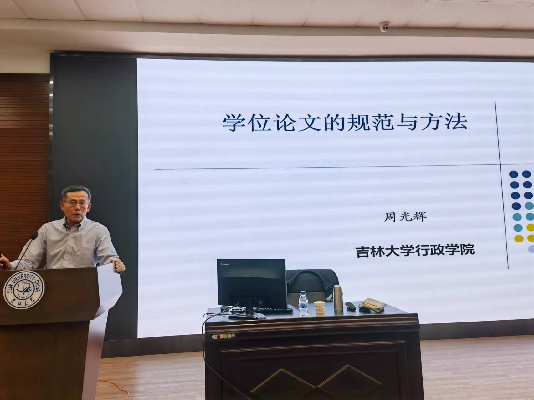 讲座开始,周光辉教授对新同学的到来表示欢迎,他强调研究生期间要掌握目标,明白的学习;掌握标准,自觉的学习。并结合实例阐述了研究生期间的培养目标、实现培养目标的途径。