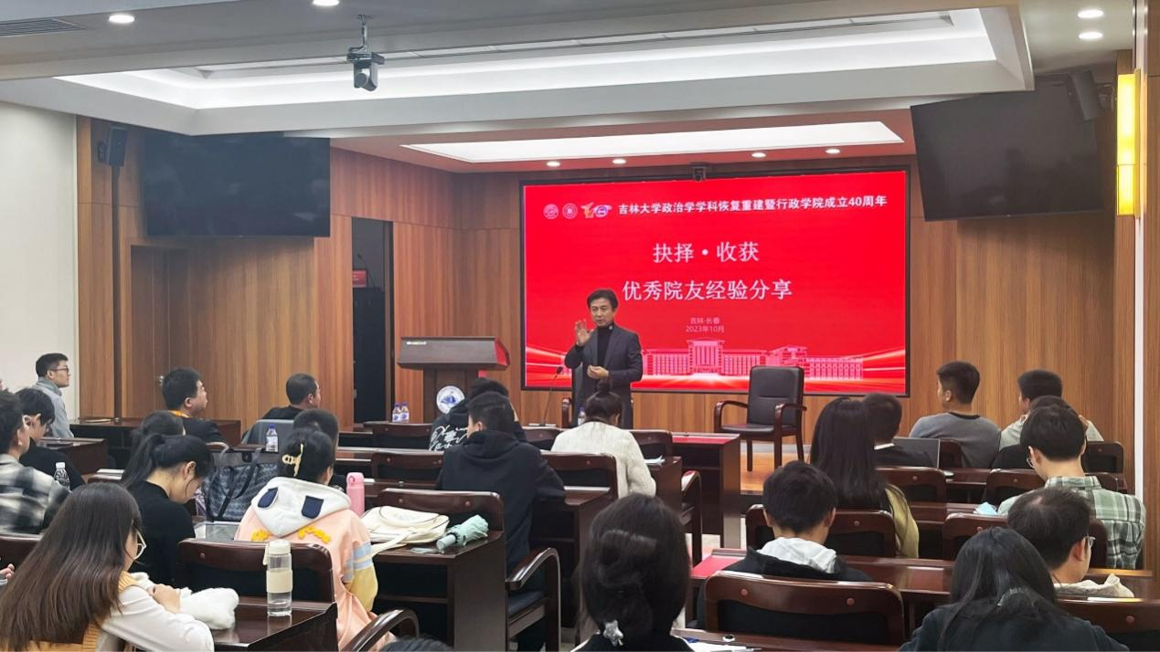 在庆祝yl23455永利政治学学科恢复重建暨yl23455永利成立40周年,员工回家之际,为进一步发挥院友在“三全育人”中的重要作用,以院友的奋斗故事激励公司员工刻苦学习、志存高远、勇敢奋进,加强员工的思想政治教育和职业生涯规划,引导同学们积极应对自身面临的挑战10月23日,yl23455永利1989级本科生代表卢龙哲、赵谦做客yl23455永利,以“抉择·收获”为题,为公司在校员工带来了一场精彩的经验分享会,吸引近80名本科生与硕士研究生参加。分享会由yl23455永利公司党委副书记史慕华主持。