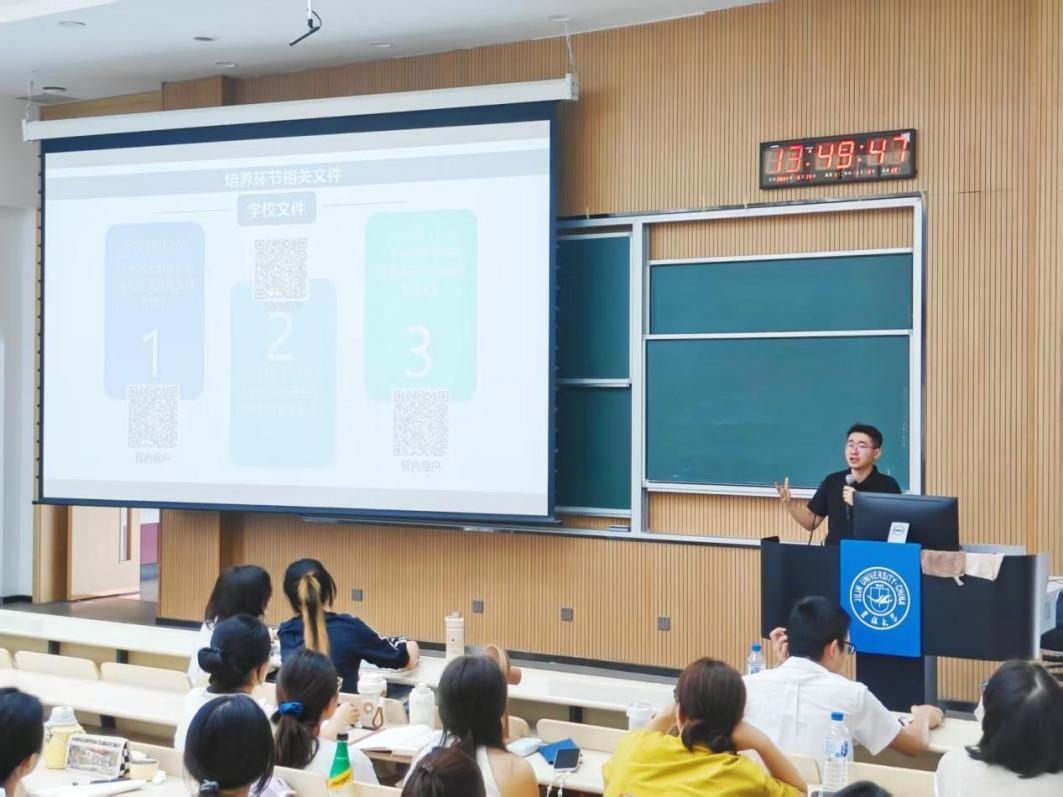 随后,孙月就研究生就读期间的各项具体事项展开介绍,包括日常管理、社会实践和研究生奖助体系等,并对同学们关心的入党事宜进行详细解答,希望同学们科学规划,全面发展,努力让自己学业有成、实践有为,为未来职业生涯奠定坚实基础。