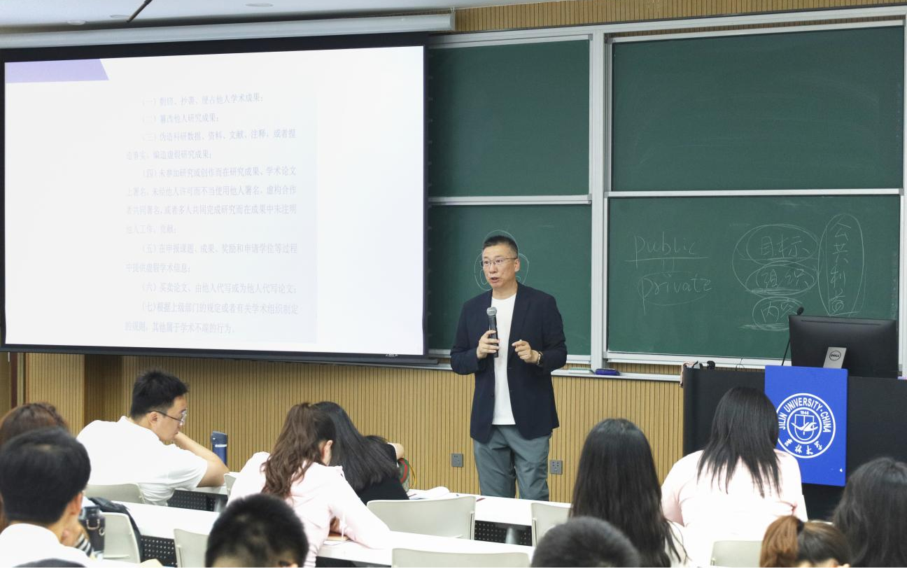 随后,蒋乐针对公司产品方案的核心要素以及各个培养环节进行了讲解。他详细介绍了公司及公司相关部门及机构职能、课程设置、学位授予标准等,为新生提供了一幅清晰的学习蓝图。同时,蒋乐就有关论文开题、中期考核、答辩申请等具体时间点都进行了重点强调与叮嘱,期望同学们能更加有规划性地平衡生活与学习,为未来学术探索和职业发展打下坚实而稳固的基础。